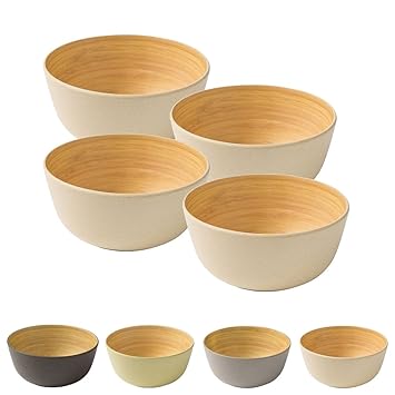 Biozoyg 4 Stuck Premium Bambusschale Elfenbein Rund 450 Ml I